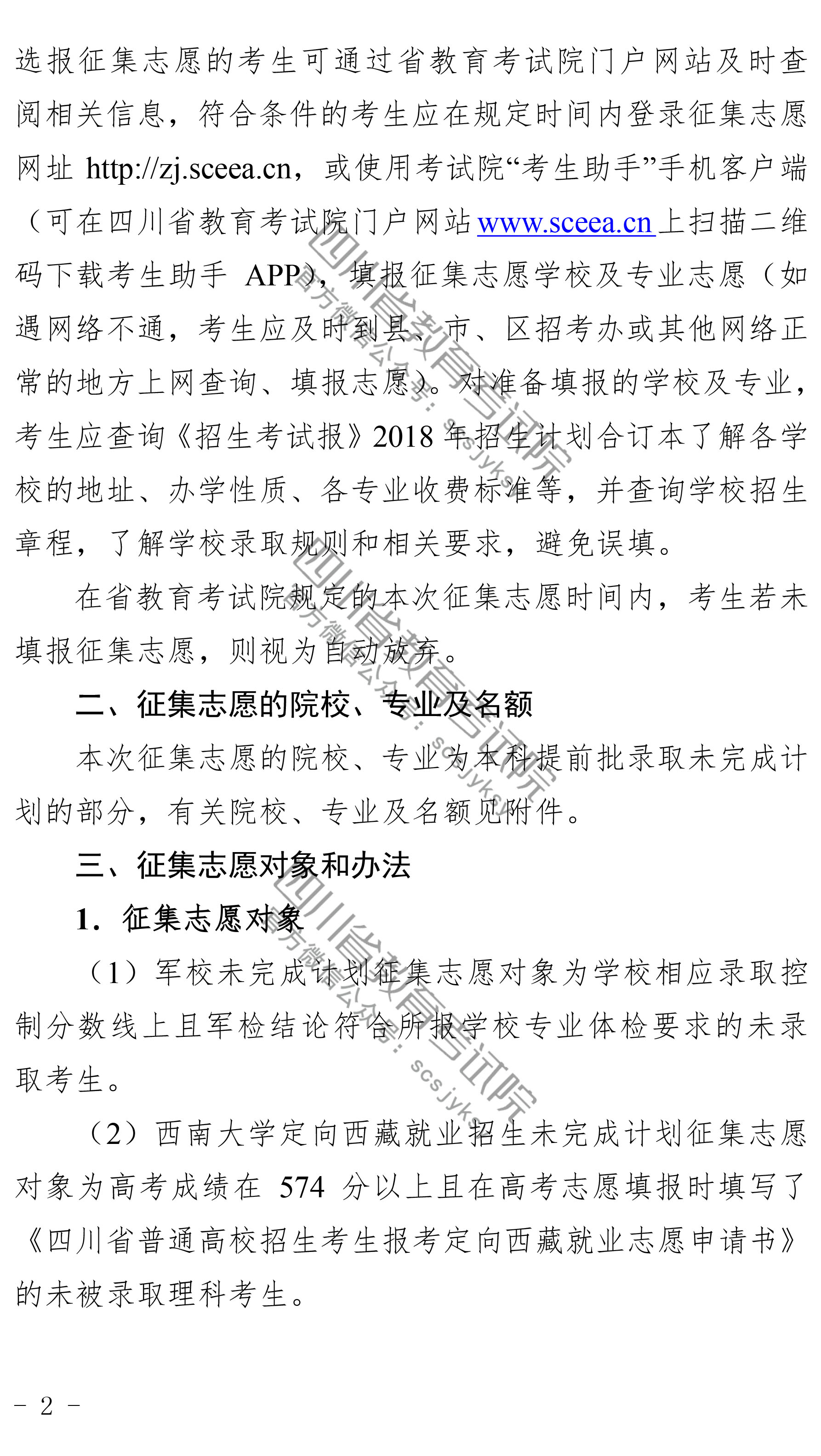 关于普通高校本科提前批录取院校未完成计划征集志愿的通知
