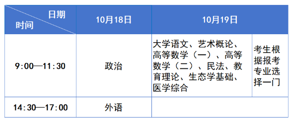 2.专科起点升本科考试时间表